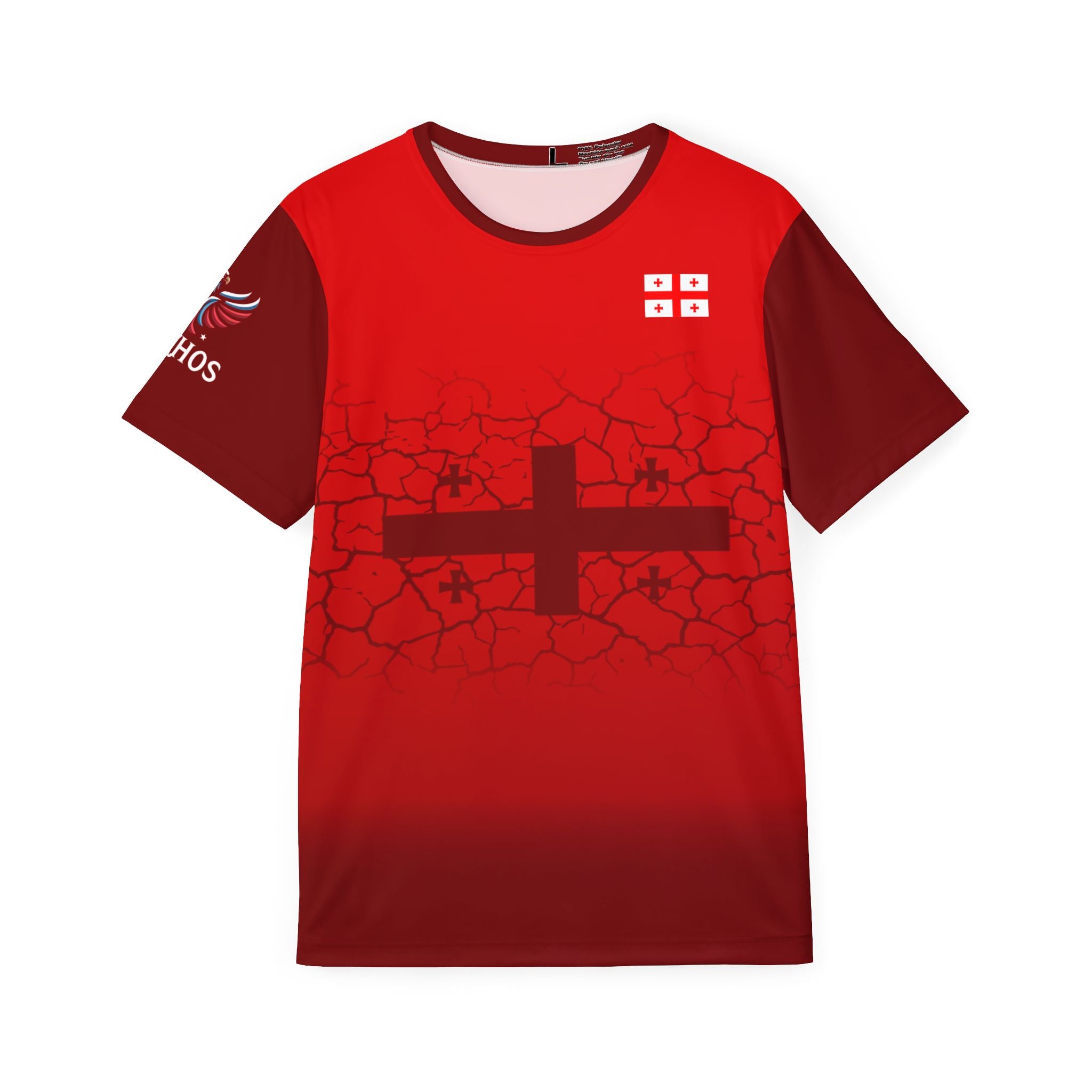 Crafted from breathable, moisture-wicking fabric, this shirt provides unmatched comfort and performance, keeping you cool and confident whether you're training, competing, or representing your roots. Available in sizes Small to 3XL, this is the perfect way to showcase your Georgian pride in style.