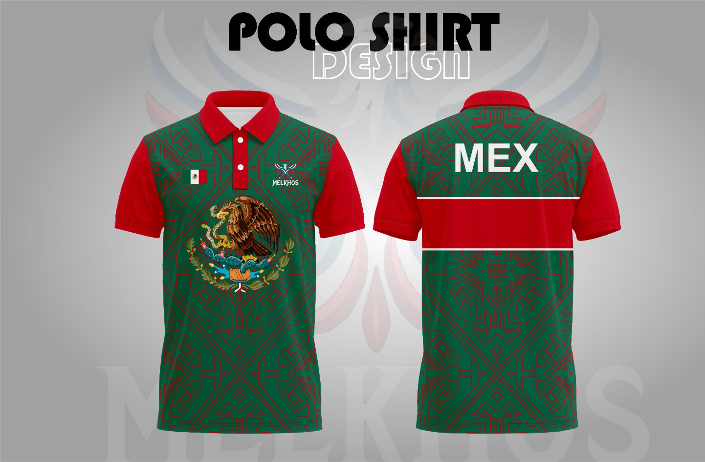 Showcase your Mexican pride with the Mexico Green Polo, available in Red and Blue collar variations. This polo features an intricate Aztec pattern and the Mexican national emblem, offering a bold and patriotic look.