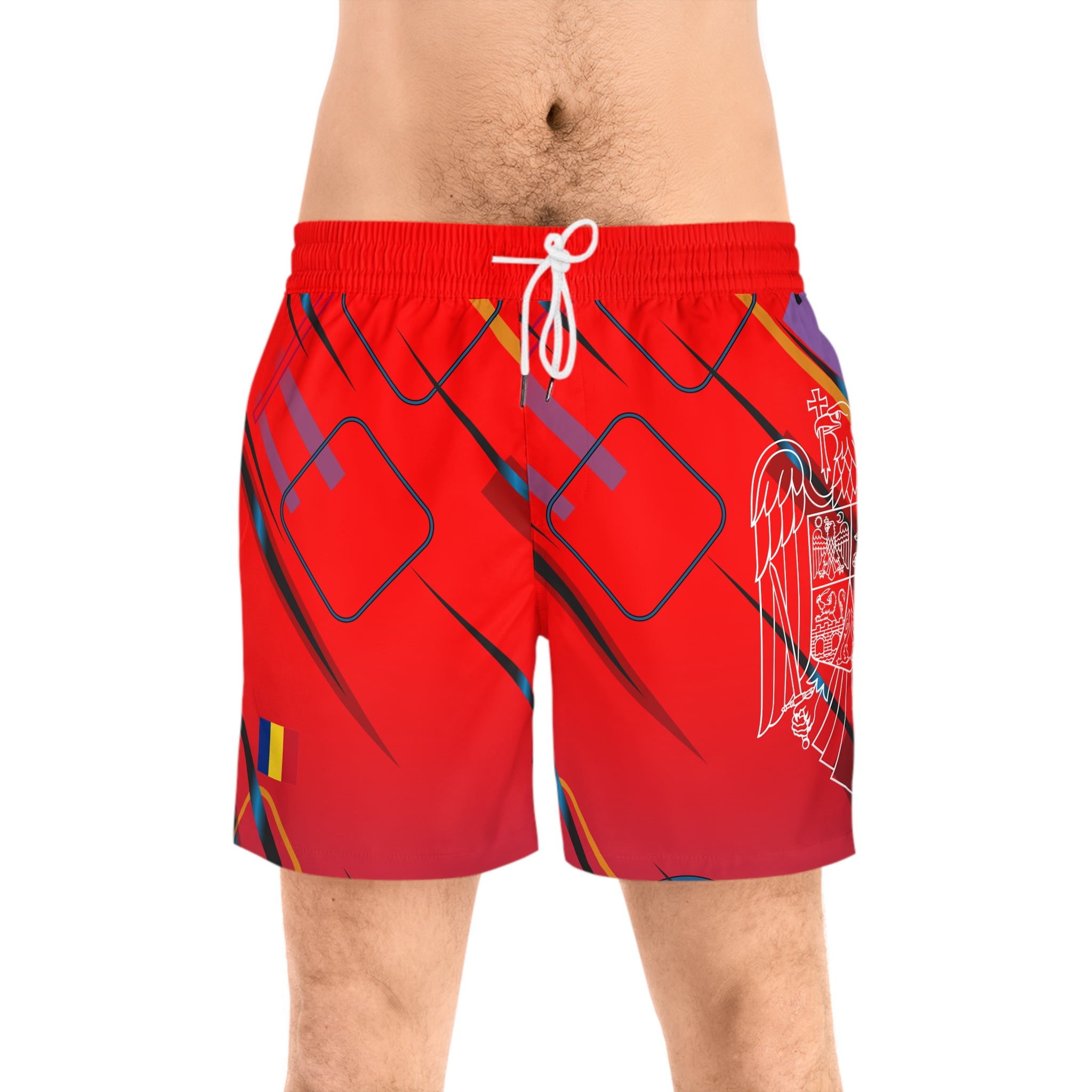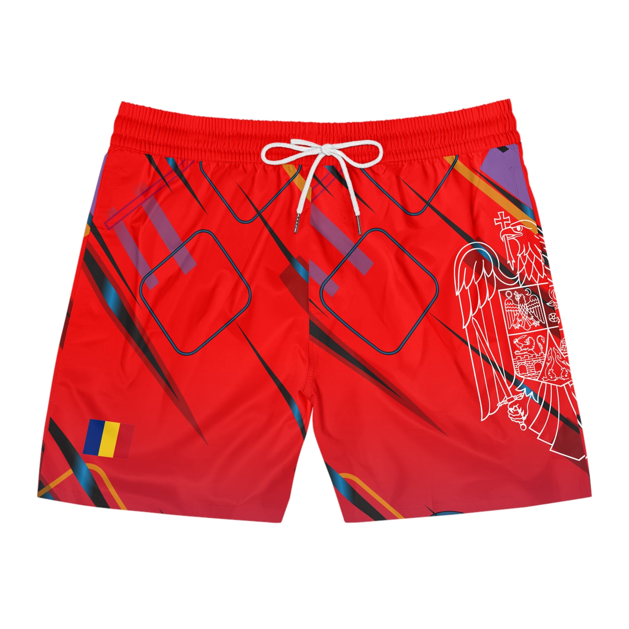 Represent Romania with our premium Romania Shorts, available in bold Red or striking Blue. Featuring the distinguished Romanian flag and an intricate geometric design, this piece embodies tradition, resilience, and national pride.