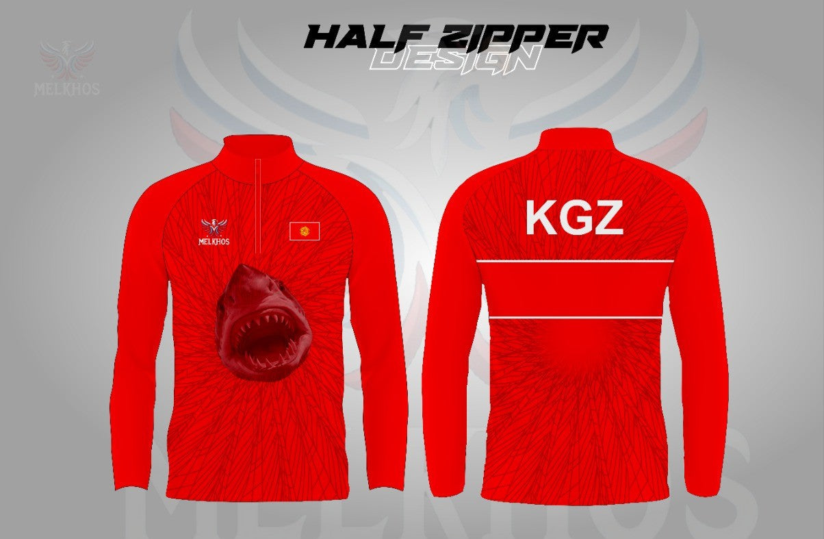 Show off your Kyrgyzstan pride with our sleek Kyrgyzstan Quarter Zip, available in bold Red or deep Blue. Featuring an aggressive shark design with sharp geometric accents and the Kyrgyzstan flag, this quarter-zip is the perfect blend of style and national pride.