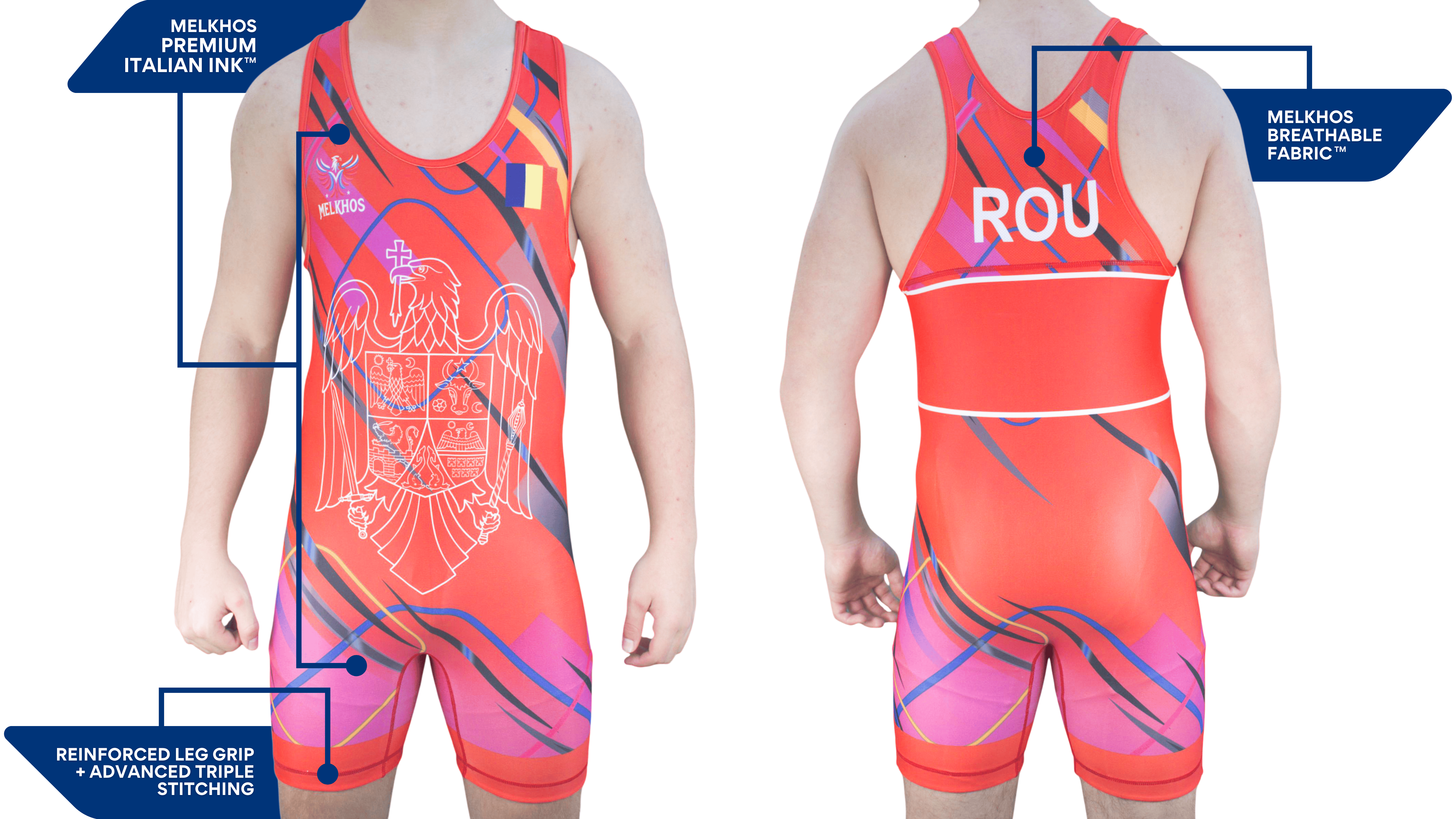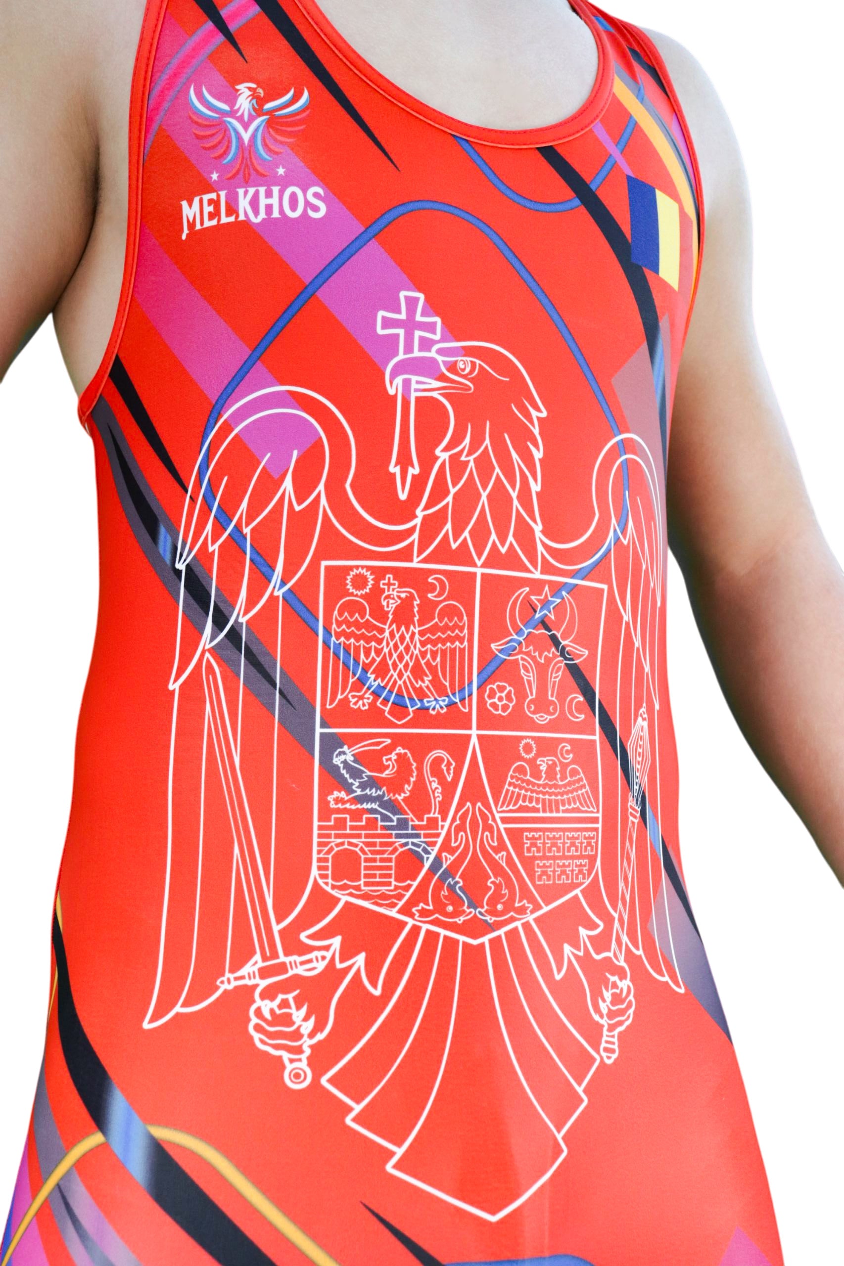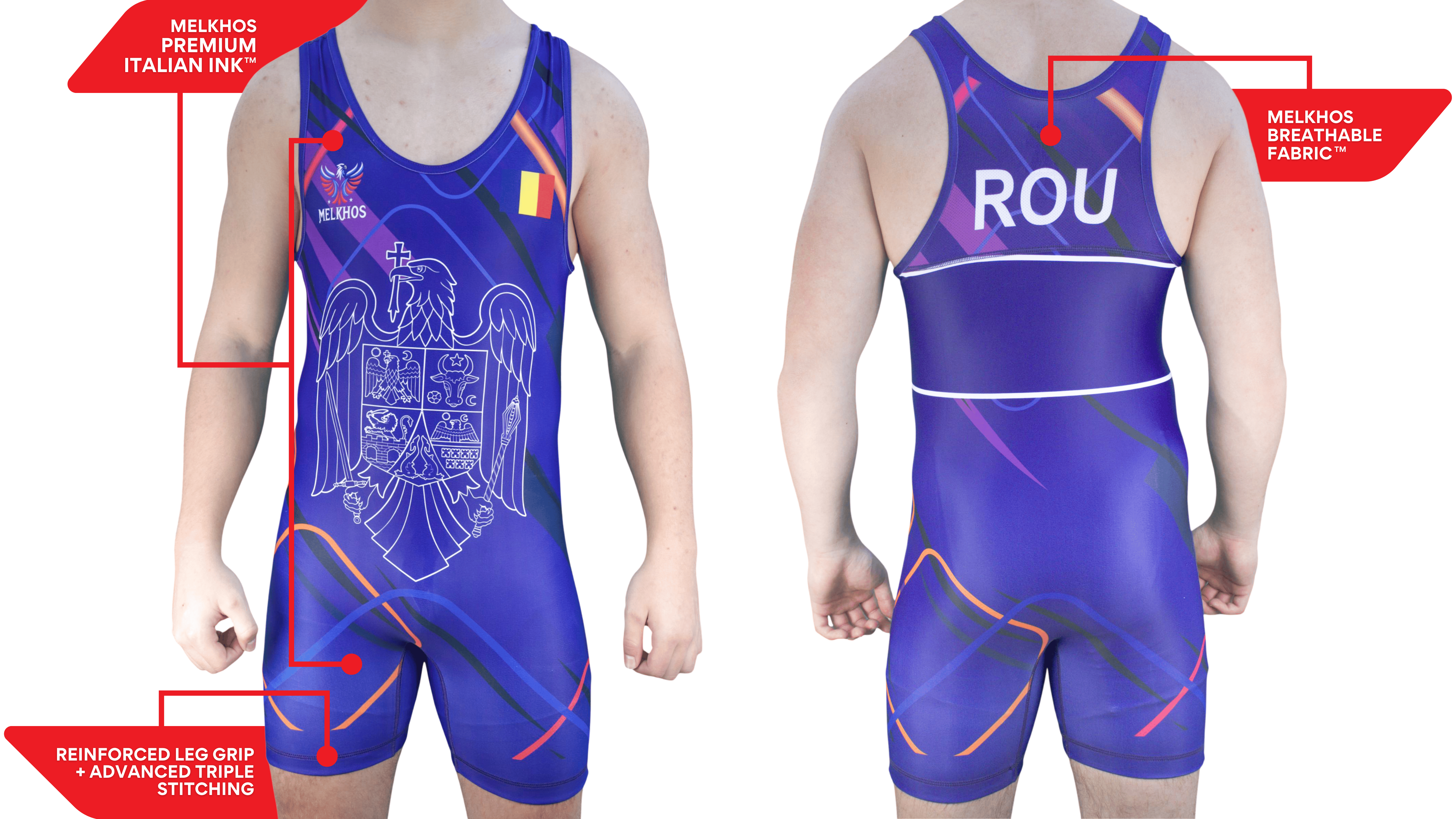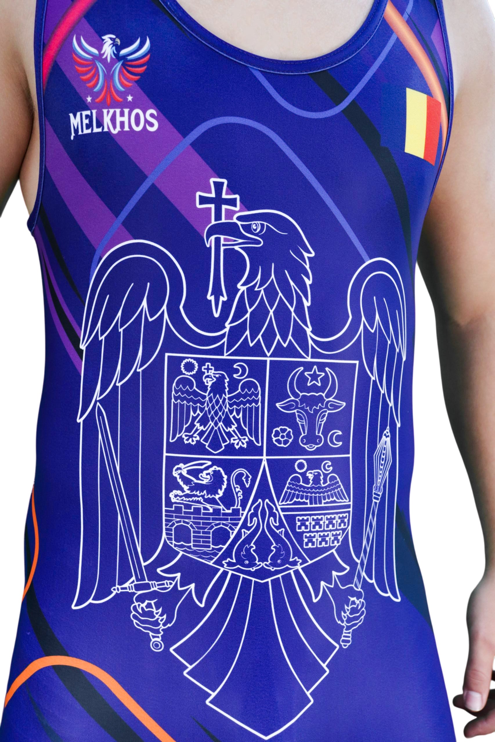 Step onto the mat with pride in the official MELKHOS Romania National Team Singlet—available in Blue, Red, or the Combo Pack (sizes S–3XL). The Combo Pack saves you 15% compared to buying individually. Each singlet is designed with the iconic vertical tricolor flag of blue, yellow, and red. The national coat of arms, a golden aquila holding a sword and scepter, represents the nation's courage and sovereignty, allowing you to honor a rich history and a united heritage with every match.